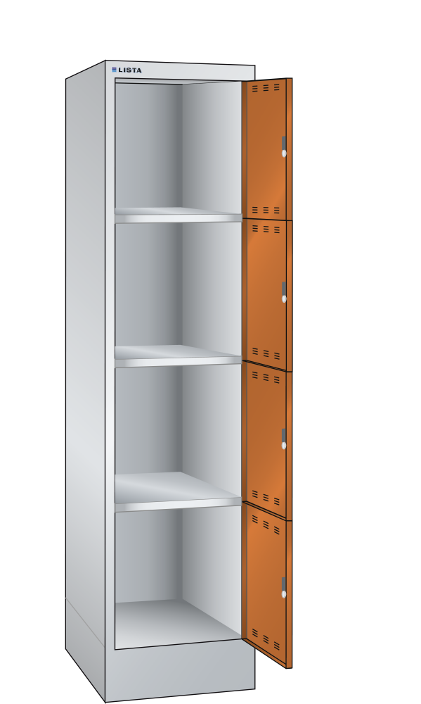 Fächerschrank (BxTxH) 415x500x1795mm 1x4 Fächer Sicherheits-Drehknopfverschluss Lichtgrau RAL 7035 / Orange RAL 2004