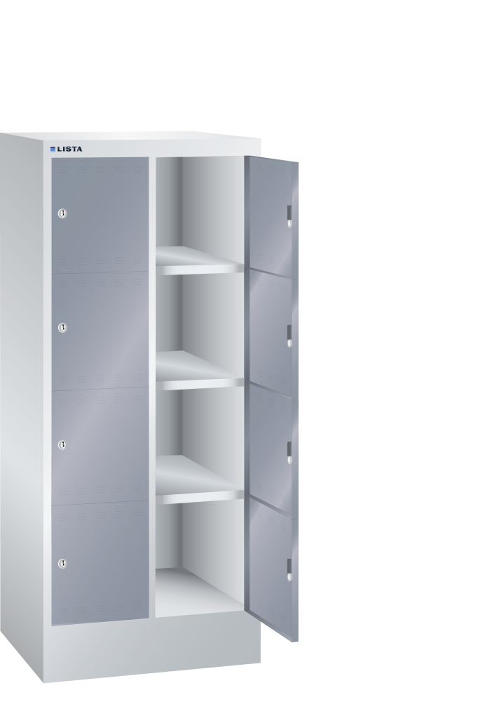 Fächerschrank (BxTxH) 610x500x1395mm 2x4 Fächer Sicherheits-Drehknopfverschluss Lichtgrau RAL 7035 / Weissaluminium RAL 9006