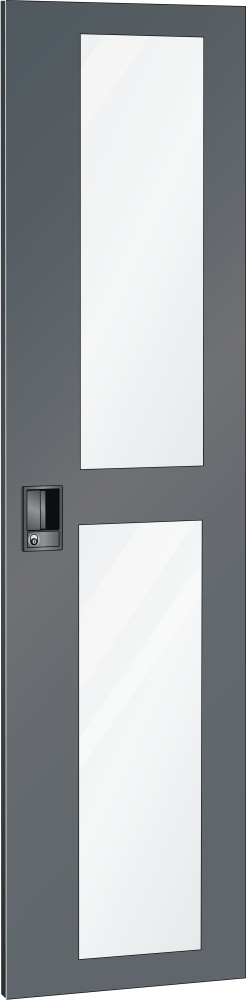 Flügeltüren: Die Flügeltüren in Vollblech oder mit Sichtfenster sind aus einem Stück gekantet, einschlagend und mit dem Schrankgehäuse bündig abschliessend. Die Lagerung der Türen ist mit Scharnieren möglich, wobei der Öffnungswinkel ca. 115 Grad beträgt. Die Flügeltüren können wahlweise mit KEY Lock, CODE Lock oder RFID Lock ausgestattet werden.