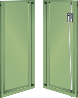 Flügeltüren: Die innenliegenden Flügeltüren aus Stahlblech sind mit einem 2-Stangen-Verschluss versehen und mit den Schliesssystemen KEY Lock, CODE Lock oder RFID Lock verfügbar. Der maximale Öffnungswinkel beträgt 235 Grad.