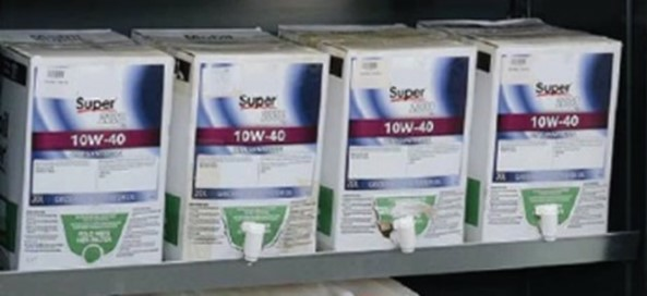 Motorenöl- Flügeltürschrank: Dieser Flüssigkeit-Bereitstellungsschrank eigenet sich für anwendungsfertigen Flüssigkeit-Gebinden (Motorenöl) mit integriertem Ausguss.