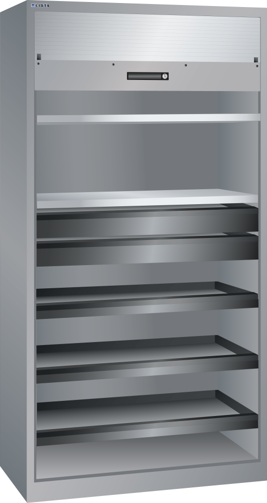 Rollladenschrank (BxTxH) 1000x580x1950mm 2 Verstellböden, 2 Schubladen, 3 Auszugböden KEY Lock Taubengrau NCS S 4502-B