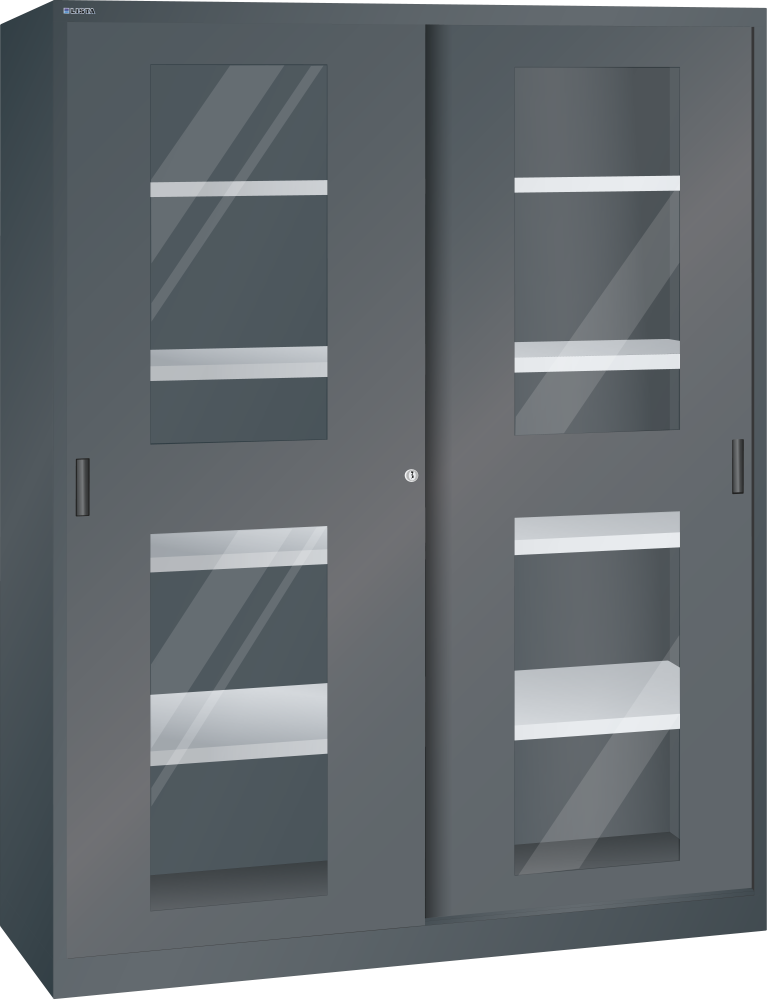 Schiebetürschrank mit 2 Sichtfenster-Türen und Trennwand (BxTxH) 1500x500x1950mm 8 Verstellböden KEY Lock Schwarz NCS S 9000-N