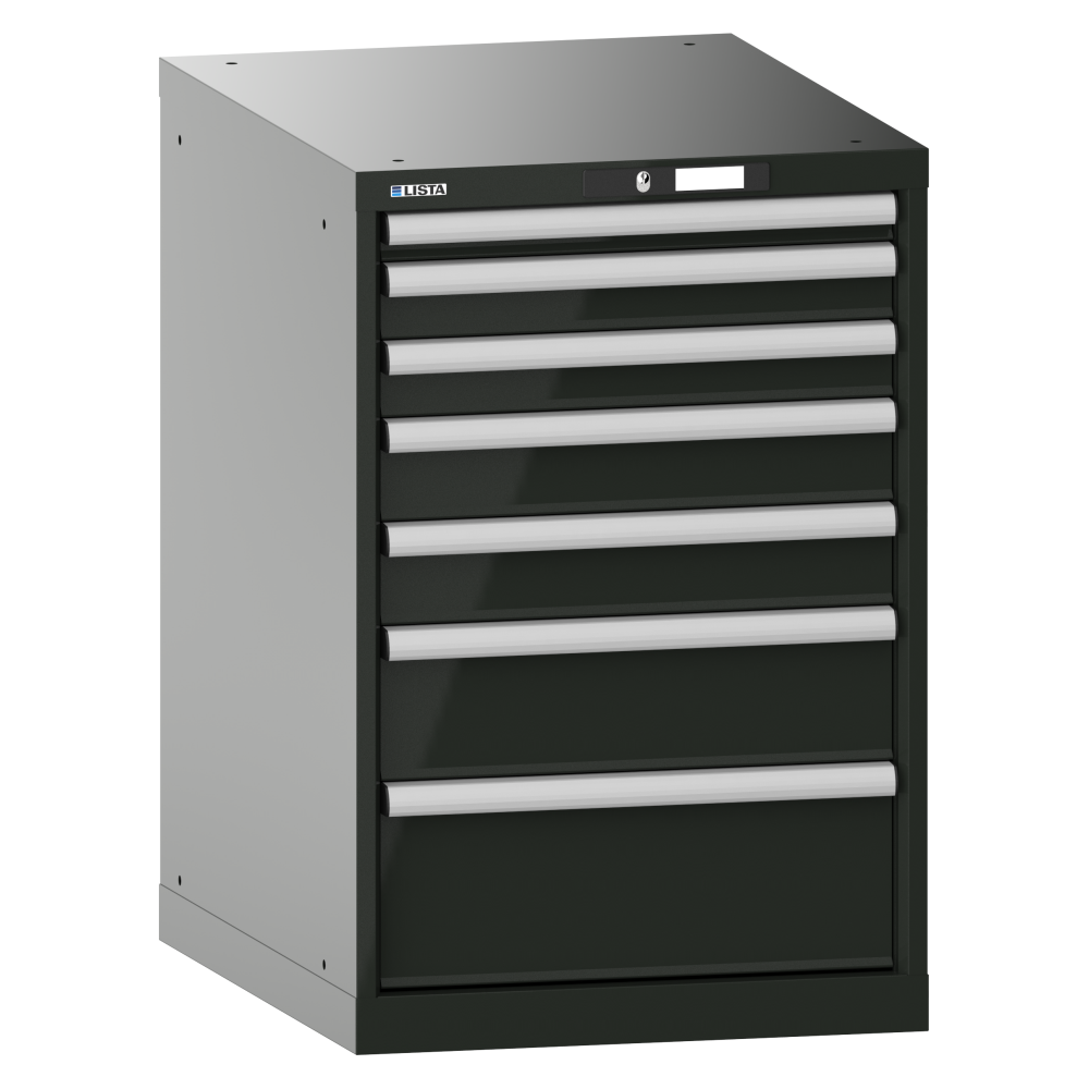Schubladenschrank 27x36E (BxTxH) 564x725x850mm 7 Schubladen (1x50/2x75/2x100/1x150/1x200) 75kg KEY Lock Schwarz NCS S 9000-N