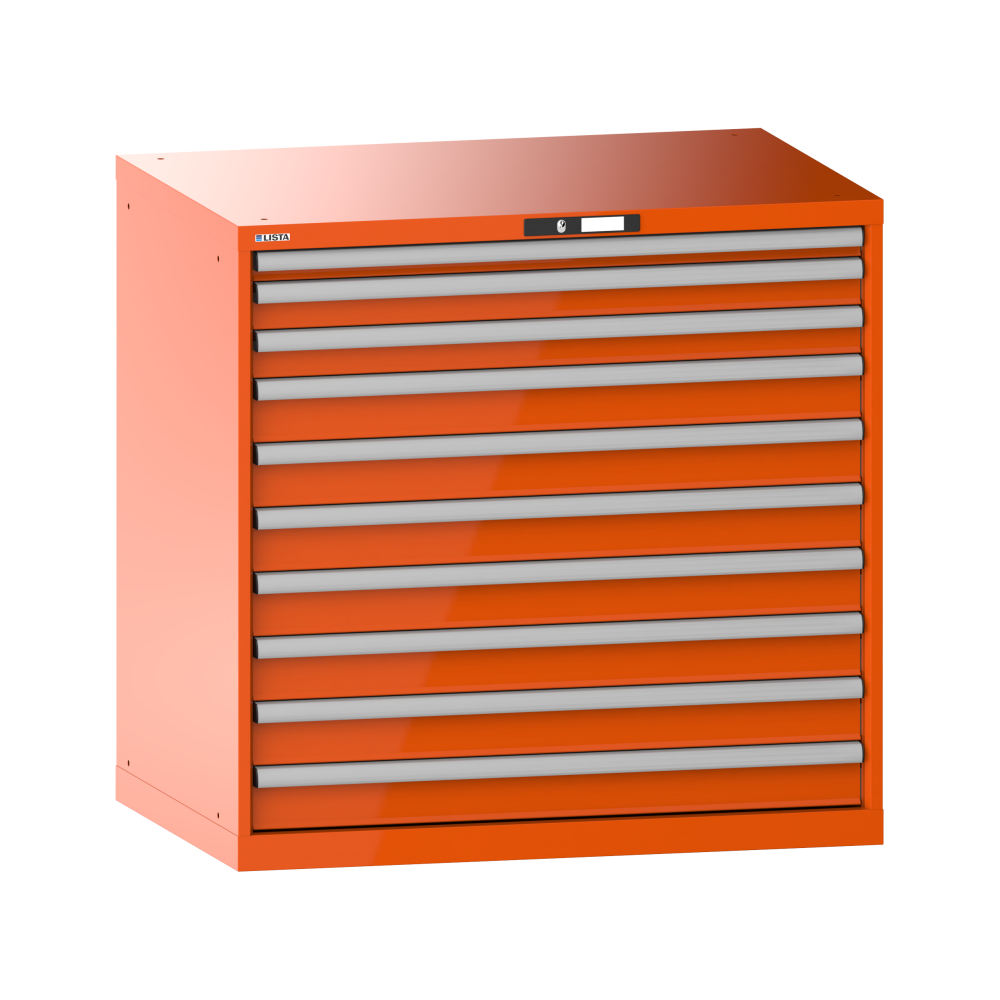 Schubladenschrank 54x36E (BxTxH) 1023x725x1000mm 10 Schubladen (1x50*/2x75/7x100) *75/200kg KEY Lock Orange RAL 2004