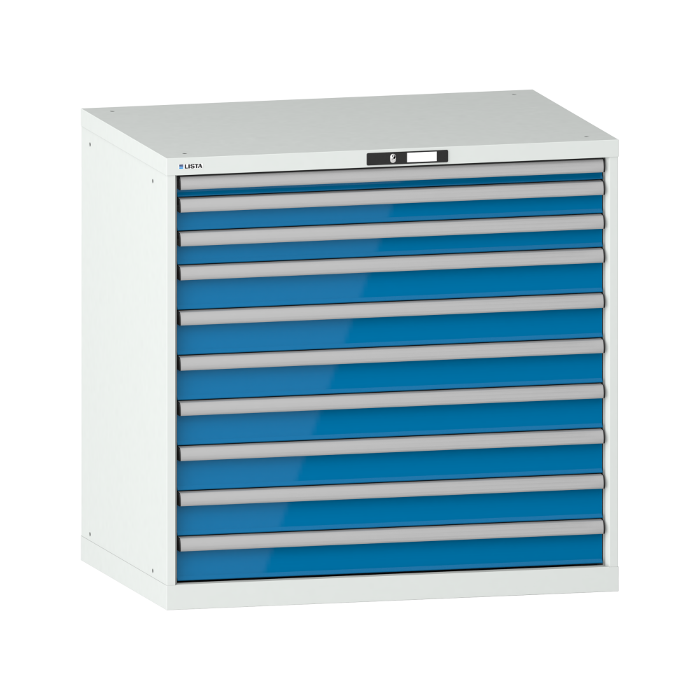 Schubladenschrank 54x36E (BxTxH) 1023x725x1000mm 10 Schubladen (200kg) KEY Lock Lichtgrau RAL 7035 / Lichtblau RAL 5012