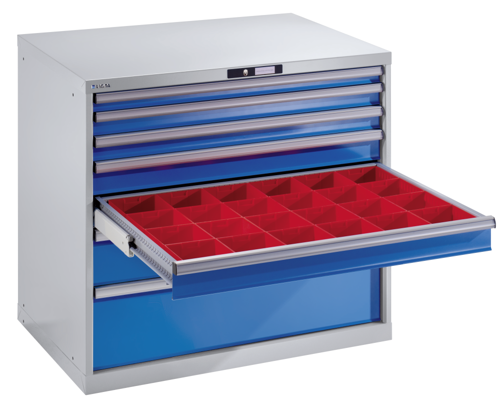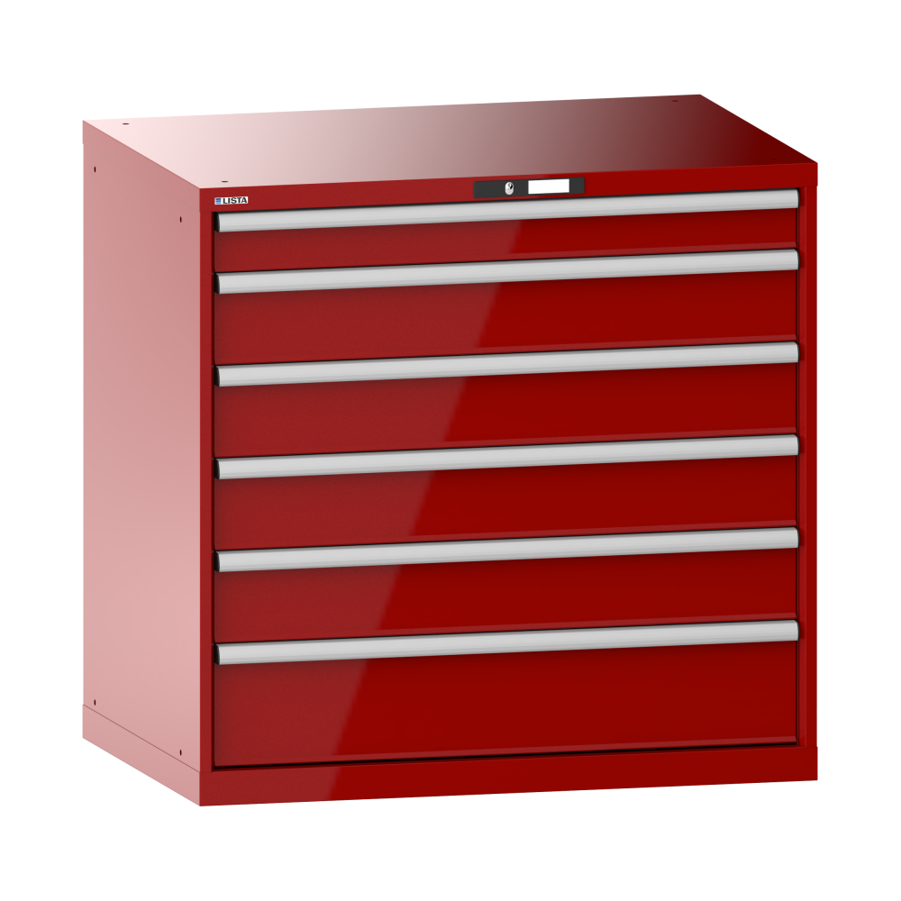 Schubladenschrank 54x36E (BxTxH) 1023x725x1000mm 6 Schubladen (1x100/4x150/1x200) 200kg KEY Lock Rubinrot RAL 3003
