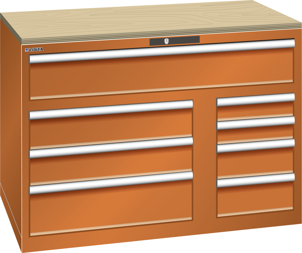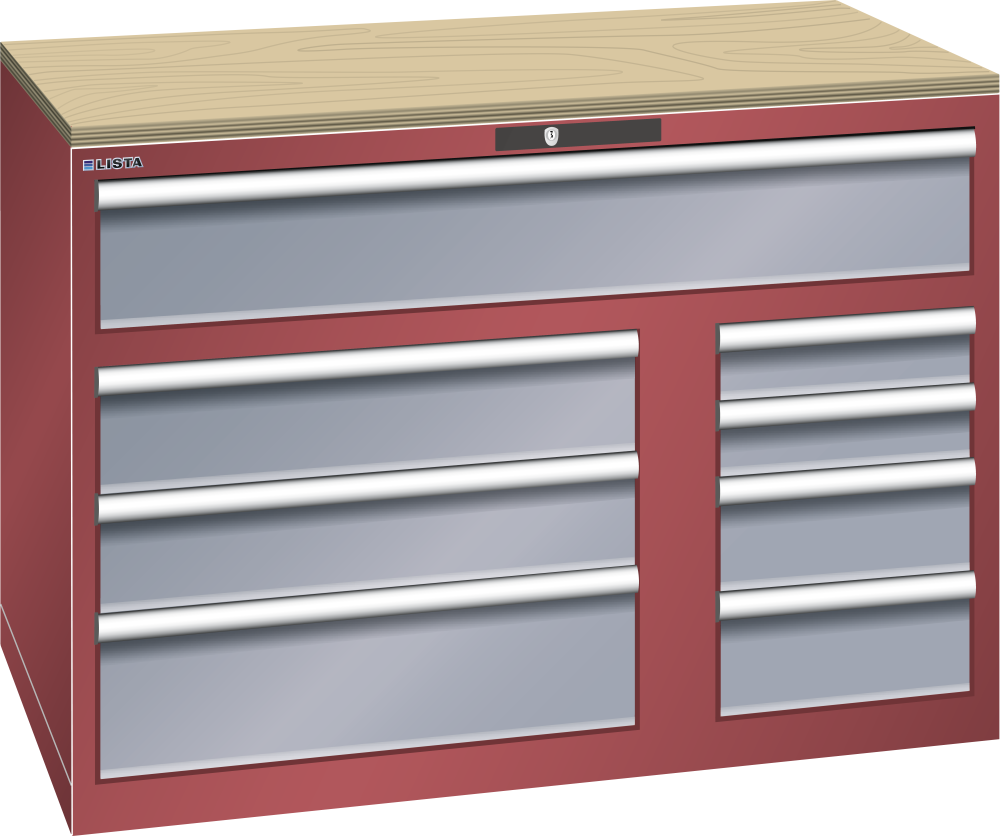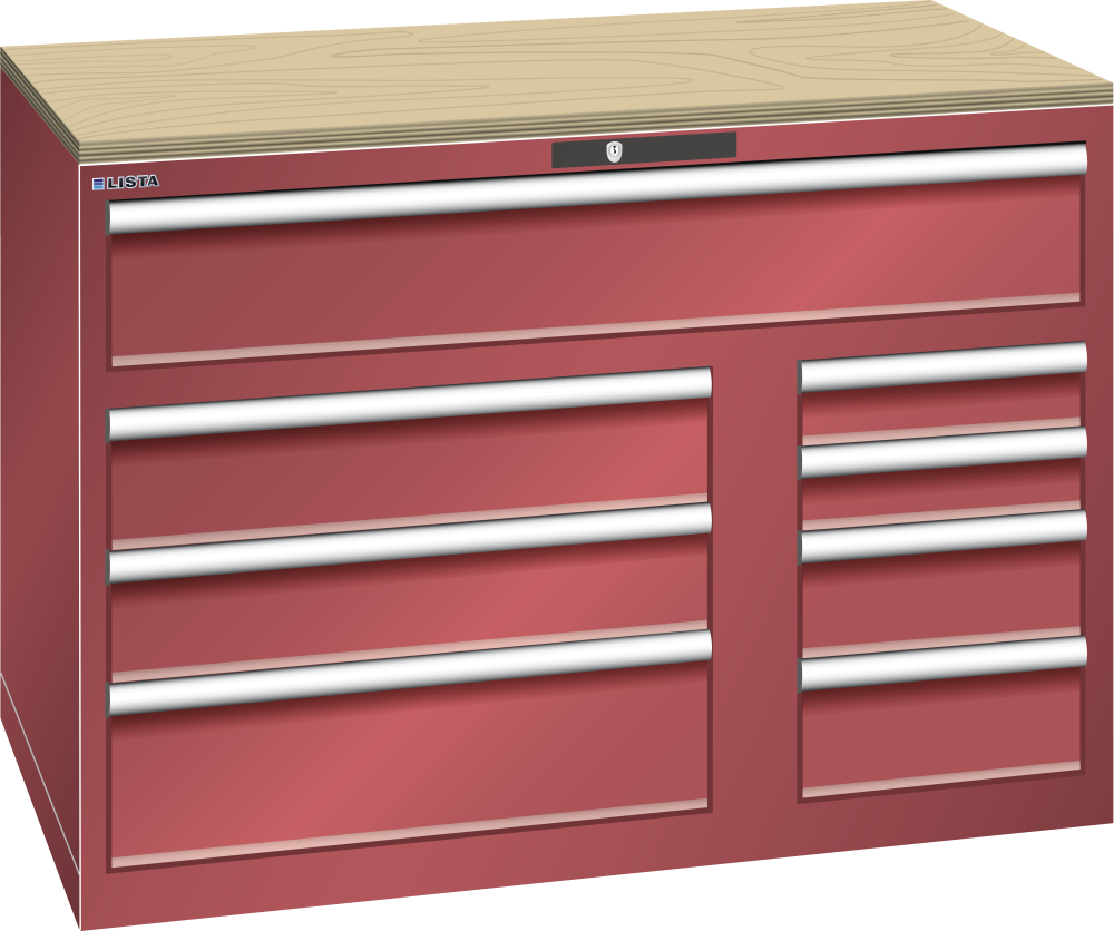 Schubladenschrank Toolbox 64x36E (BxTxH) 1193x725x870mm 8 Schubladen (64x36E: 1x200**, 36x36E: 2x150/1x200, 18x36E: 2x150/2x100) 75/**200kg KEY Lock Feuerrot RAL 3000