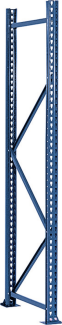 Ständerrahmen Typ 80: Ständer gewalzt, mit frontseitiger Lochung, Teilung 50 mm, zum Einhängen der Längsträger. Die Ständer werden mit Horizontal- und Diagonalstreben zu einem festen Rahmen verschraubt. Inkl. Fussplatten, mit Löchern für die Bodenverankerung. Sicherheitsfaktor: 1.5; laut Empfehlung der F.E.M. Ausführung: Stahlblech St 52-3. Farbe: Saphirblau RAL-5003, (KPV). Verstrebungen verzinkt. Andere Abmessungen auf Anfrage.