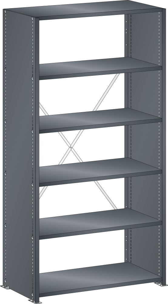 2 Vollblech-Seitenwände, 1 Diagonalkreuz verzinkt, Fachböden glatt (Stärke 25 mm)