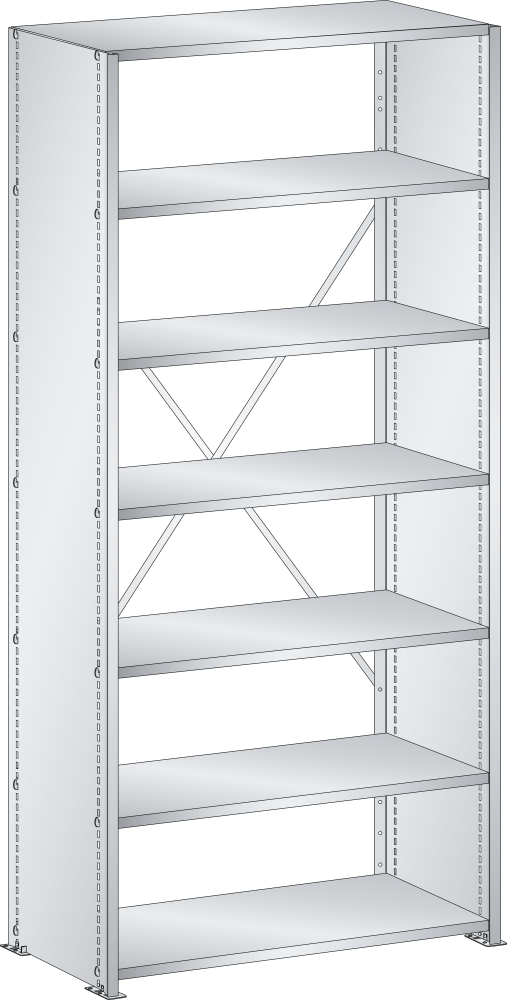 2 Vollblech-Seitenwände, 1 Diagonalkreuz verzinkt, Fachböden glatt (Stärke 25 mm)