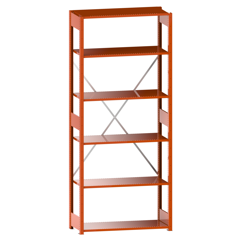 Universalregal L1006 Grundregal (BxTxH) 1000x500x2500mm 6 Fachböden geschlitzt (220kg) Orange RAL 2004