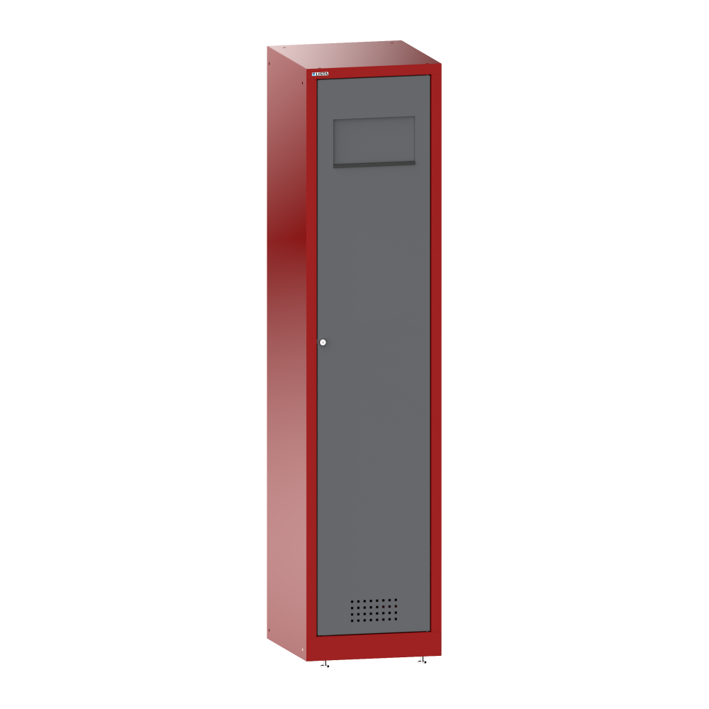 Wäschesammelschrank (BxTxH) 455x500x1950mm inkl. 4 Verstellfüsse und Einwurfklappe KEY Lock Rubinrot RAL 3003 / Grau metallic NCS S 6502-B