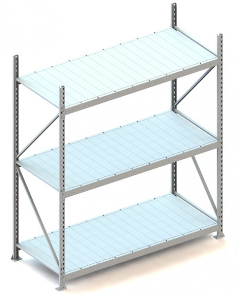 Weitspannregal Grundregal (BxTxH) 2600x650x2200mm 3 Fachböden mit Stahlpaneelen 490kg Verzinkt