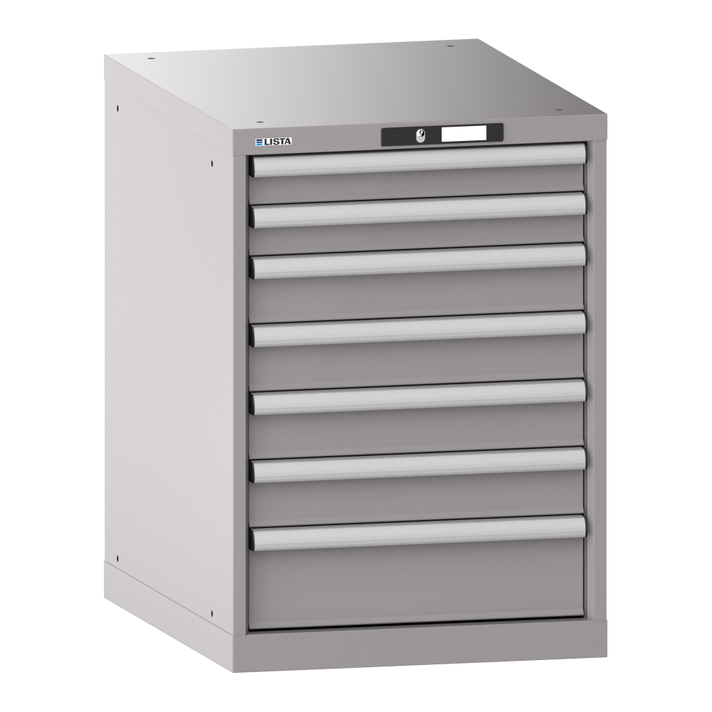 Drawer cabinet 27x36E (WxDxH) 564x725x800mm 7 drawers (2x75/4x100/1x150) 75kg KEY Lock Grey aluminium RAL 9007