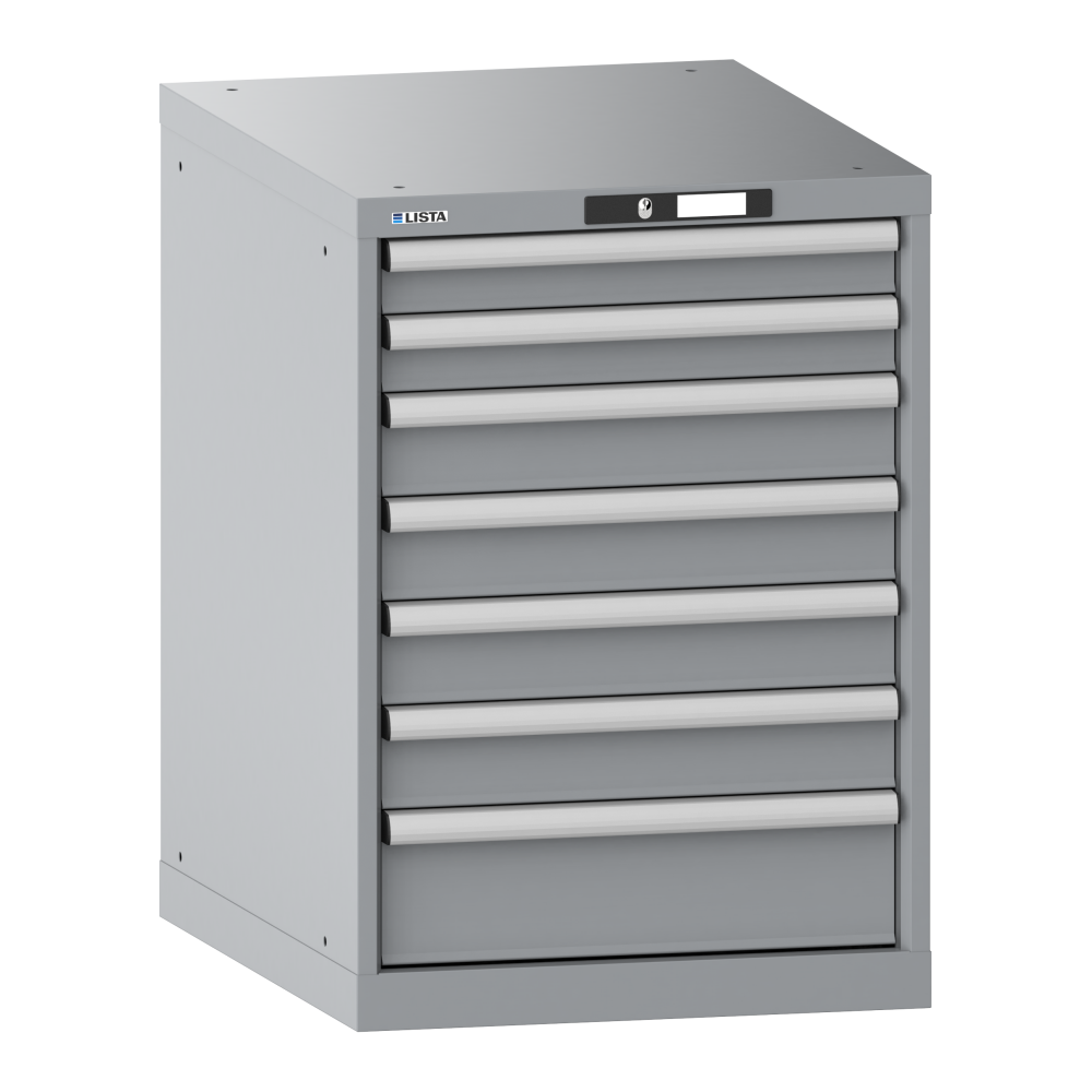 Drawer cabinet 27x36E (WxDxH) 564x725x800mm 7 drawers (2x75/4x100/1x150) 75kg KEY Lock Pigeon grey NCS S 4502-B