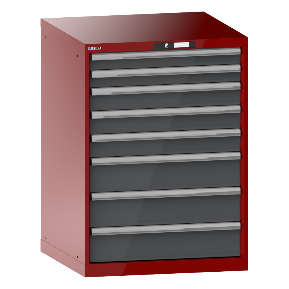 Drawer cabinet 36x36E (WxDxH) 717x725x1000mm 8 drawers (2x75/3x100/3x150) 200kg KEY Lock Ruby red RAL 3003 / Grey metallic NCS S 6502-B