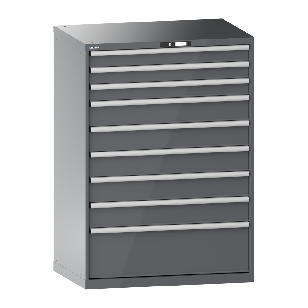 Drawer cabinet 54x36E (WxDxH) 1023x725x1450mm 9 drawers (3x100/5x150/1x300) 200kg KEY Lock Grey metallic NCS S 6502-B