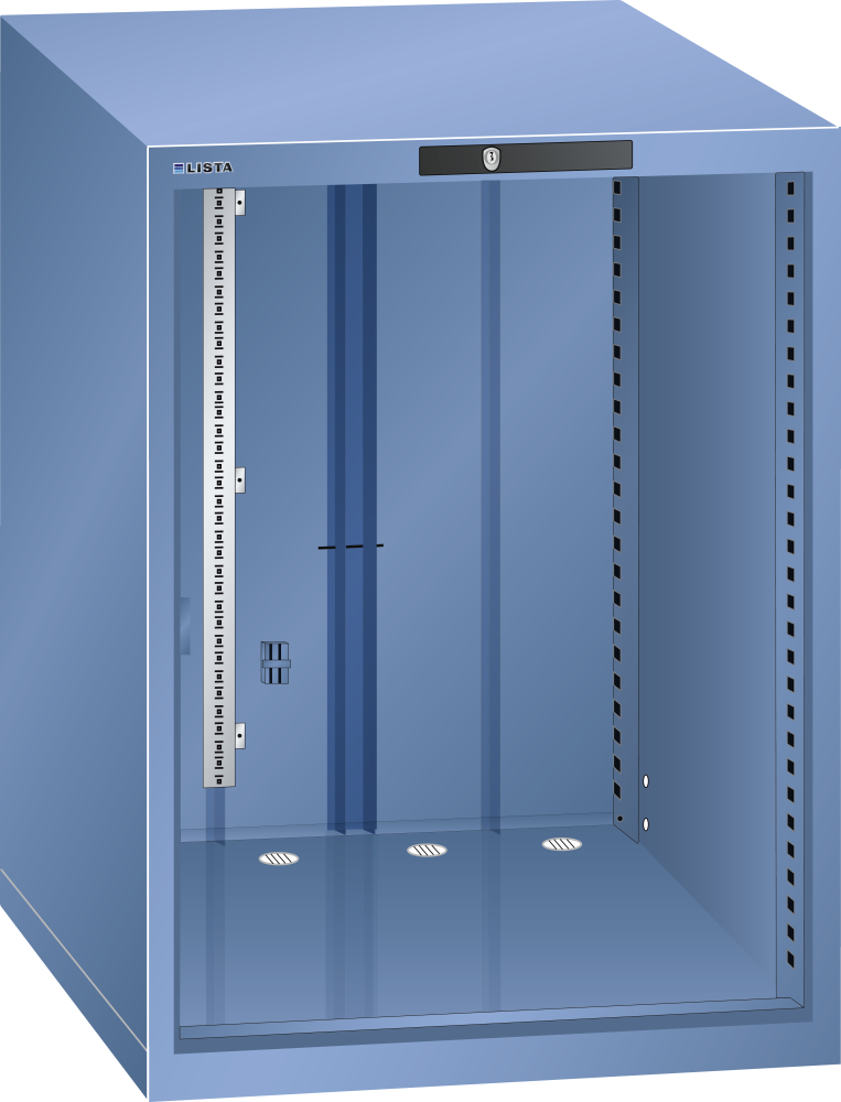 Housing 36x36E (WxDxH) 717x725x800mm incl. end cap set for electrified drawers excl. supply cable KEY Lock Capri blue RAL 5019