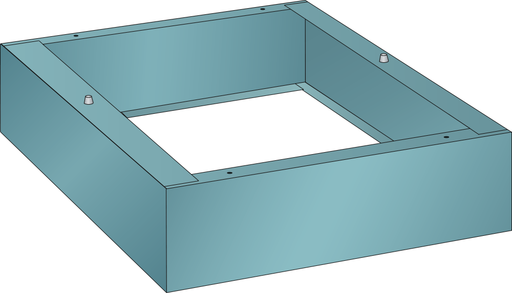 Levelling base: to level for 1396-mm-tall filing cabinets, which are combined with 1520-mm cabinets with a steel cover. Specification: sheet steel construction. Colour: according to colour chart.