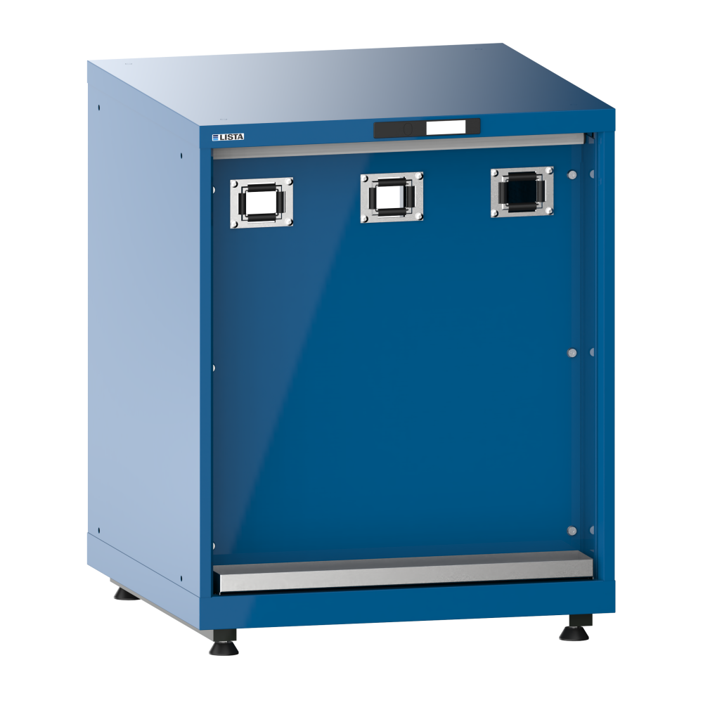 Media supply cabinet 36x36E (WxDxH) 717x725x895-940mm 3 x hose ports/1 x drip tray incl. levelling foot set for covers (4 x feet, 45-90mm) and mounting set Capri blue RAL 5019