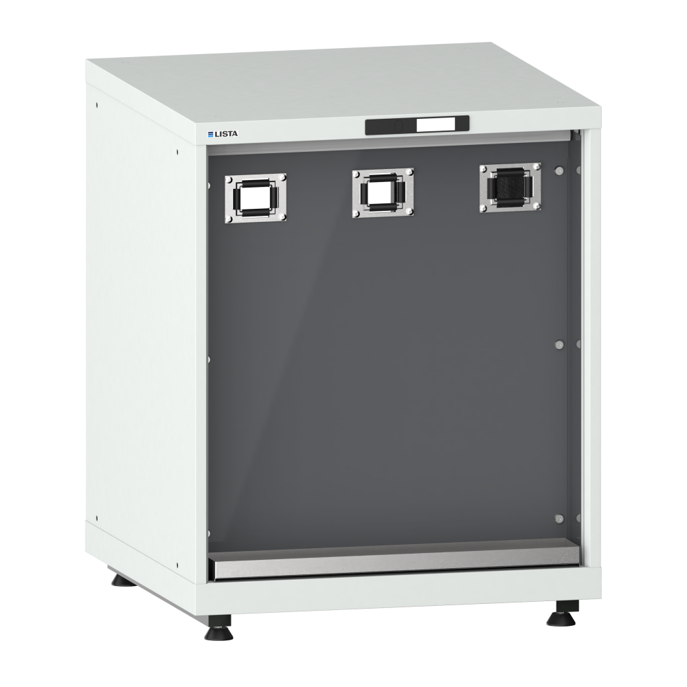Media supply cabinet 36x36E (WxDxH) 717x725x895-940mm 3 x hose ports/1 x drip tray incl. levelling foot set for covers (4 x feet, 45-90mm) and mounting set Light grey RAL 7035 / Grey metallic NCS S 6502-B