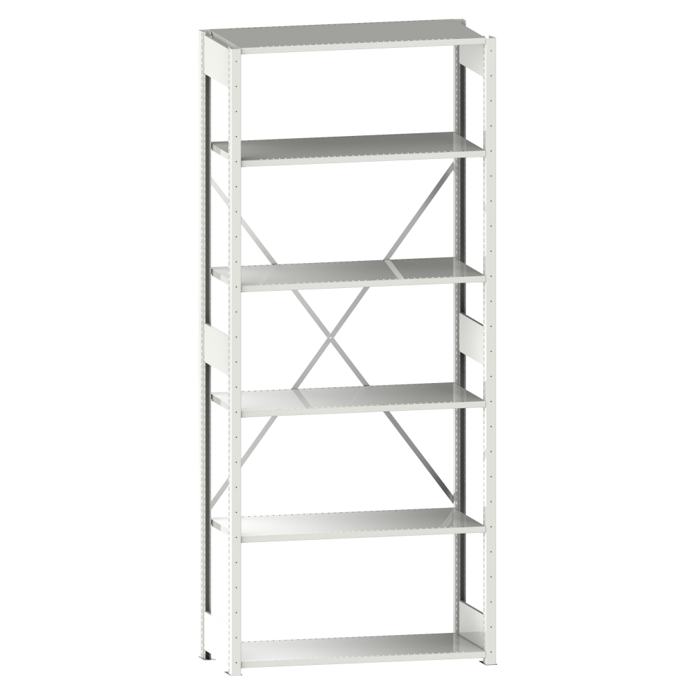 Universal shelving L1006 basic unit (WxDxH) 1000x500x2500mm 6 shelves slotted (220kg) Pure white RAL 9010