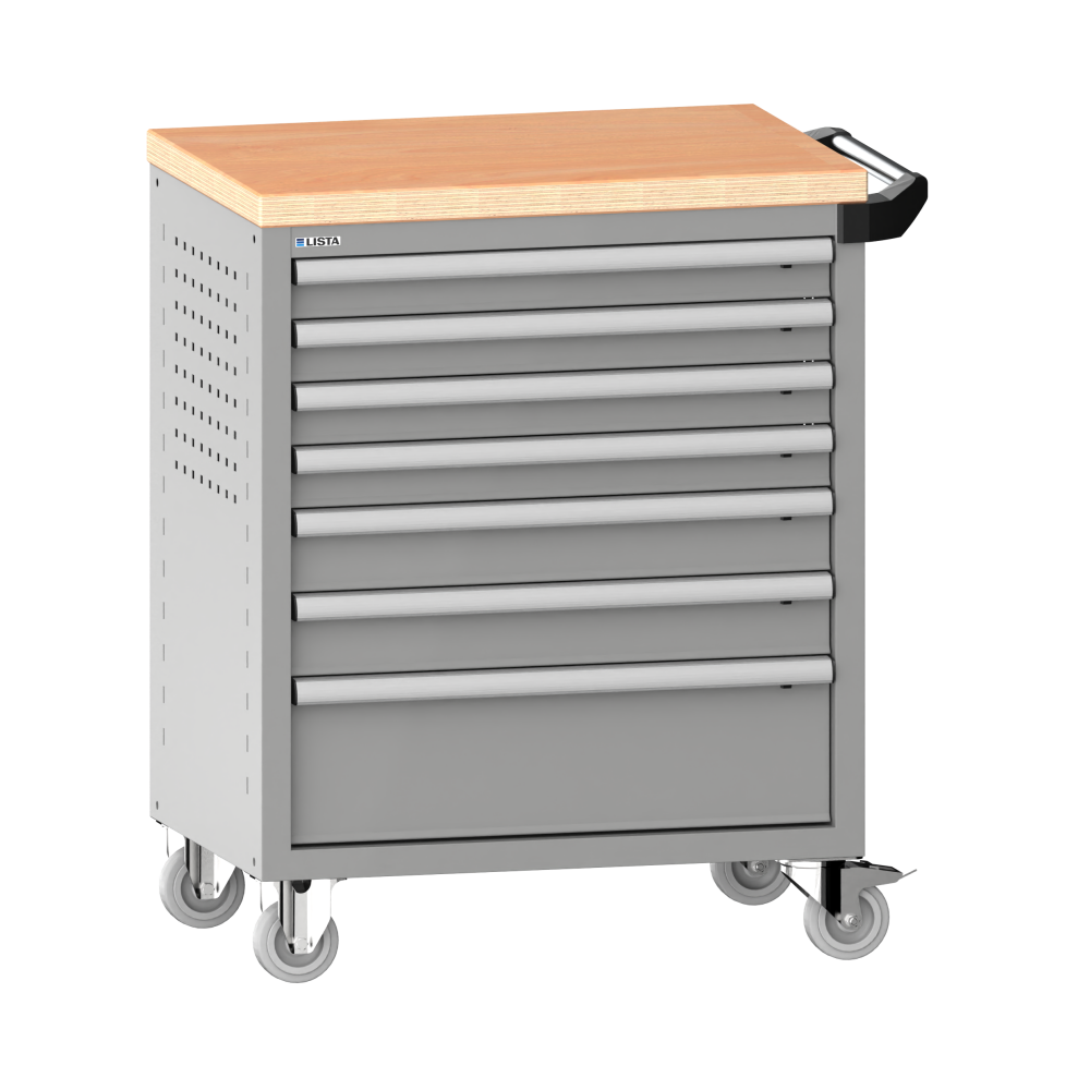 thanks to the smooth-running fixed and swivel castors (two of each) in solid rubber