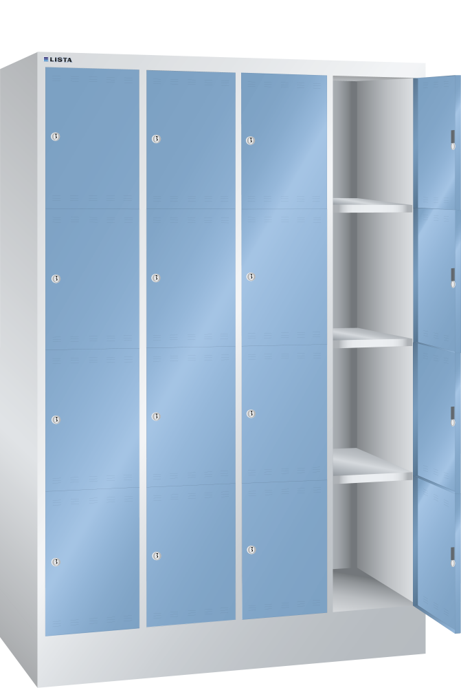 Armario con compartimento (AxPxA) 1200x500x1795mm 4x4 compartimento KEY Lock Gris luminoso RAL 7035 / Azul luminoso RAL 5012