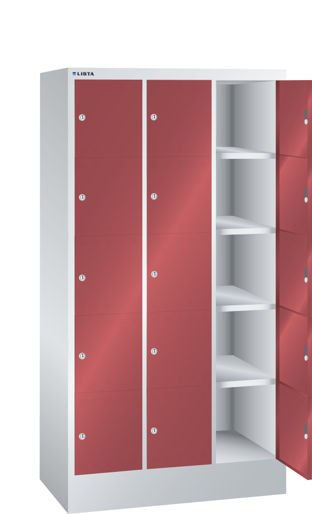 Armario con compartimento (AxPxA) 905x500x1695mm 3x5 compartimento botón giratorio de cierre Gris luminoso RAL 7035 / Rojo vivo RAL 3000