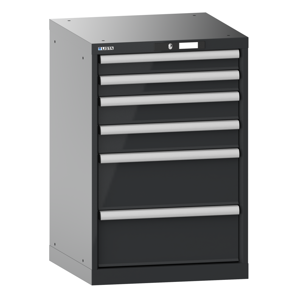 Armario de cajones 27x27E (AxPxA) 564x572x850mm 6 cajones (2x75/2x100/2x200) 75kg KEY Lock Gris antracita RAL 7016
