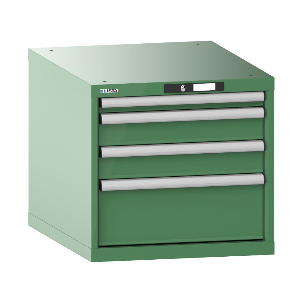 Armario de cajones 27x36E (AxPxA) 564x725x533mm 4 cajones (1x50/2x100/1x200) 75kg KEY Lock Verde reseda RAL 6011