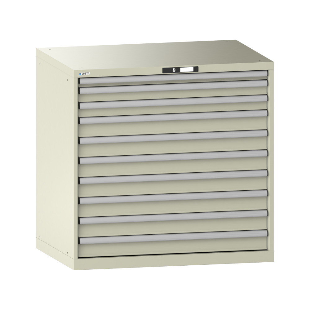 Armario de cajones 54x36E (AxPxA) 1023x725x1000mm 10 cajones (1x50*/2x75/7x100) *75/200kg KEY Lock Gris guijarro RAL 7032
