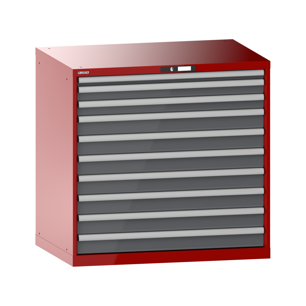 Armario de cajones 54x36E (AxPxA) 1023x725x1000mm 10 cajones (200kg) KEY Lock Rojo rubí RAL 3003 / Gris metalizado NCS S 6502-B
