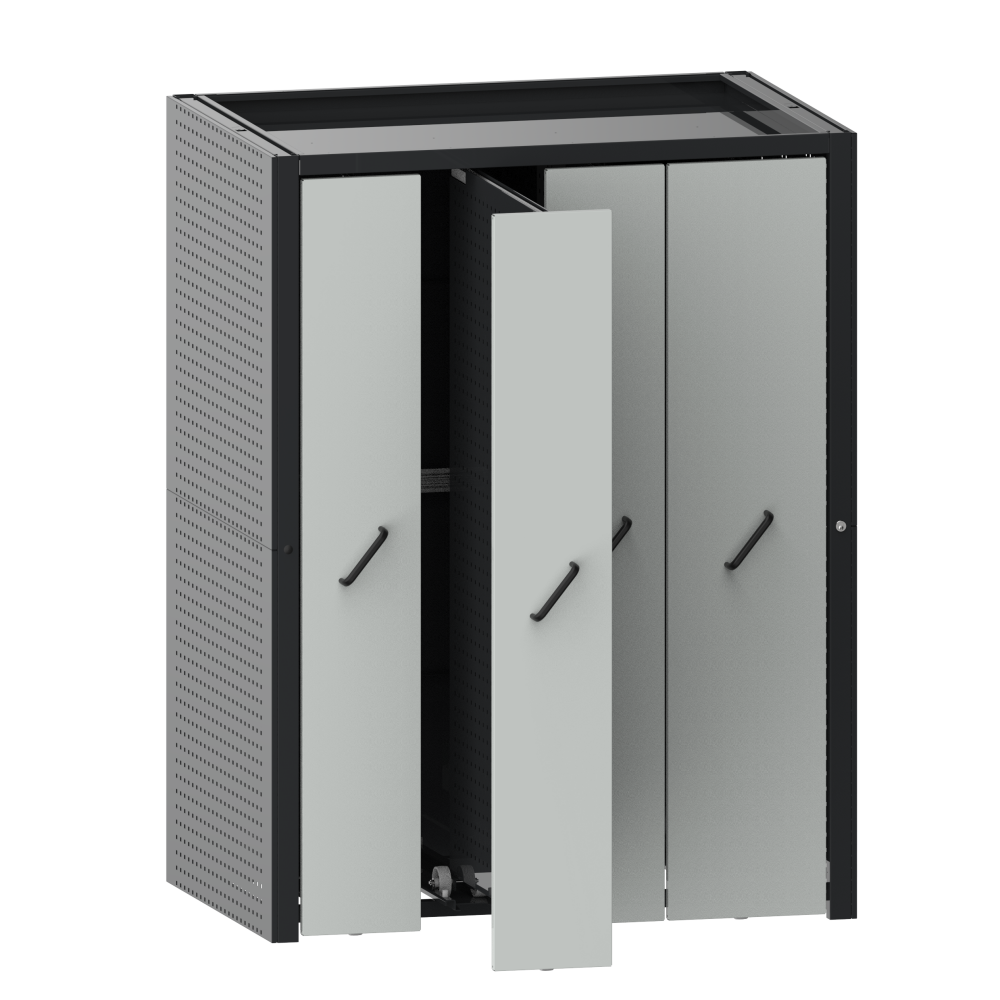 Armario de extensione verticale campo base guiado por piso con paneles frontales (AxPxA) 1484x1000x1950mm 4 extensiones (200kg) con paneles con perforación KEY Lock (excl. cilindro) Gris antracita RAL 7016 / Gris claro NCS S 2000-N