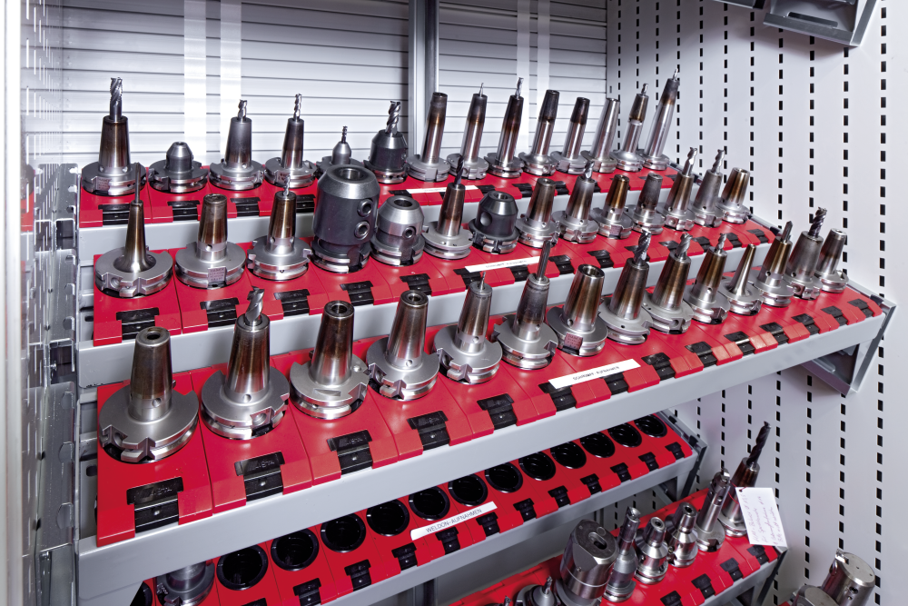 Armario de herramientas con persiana 54x27E (AxPxA) 1038x691x1950mm 8 bandeja portaconos, 80 portaherramientas HSK 63 A+C+E/80 B+D+F KEY Lock Azul turquesa RAL 5018