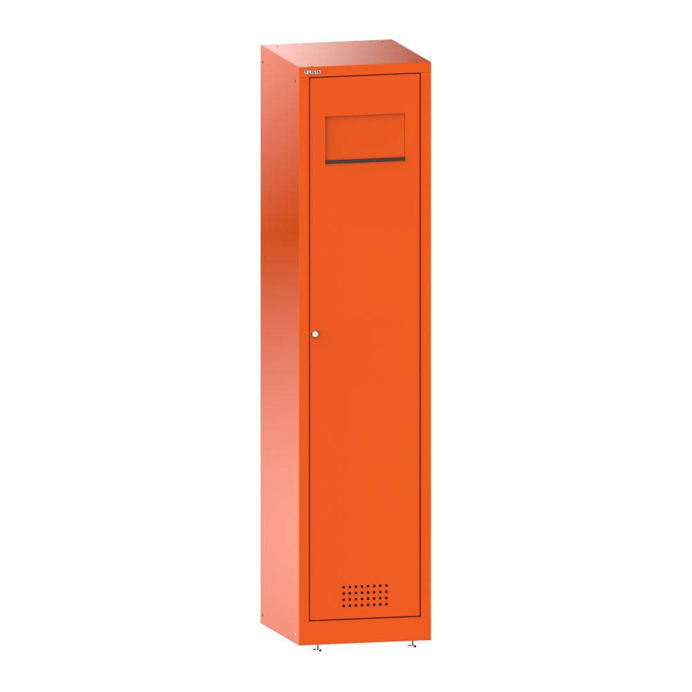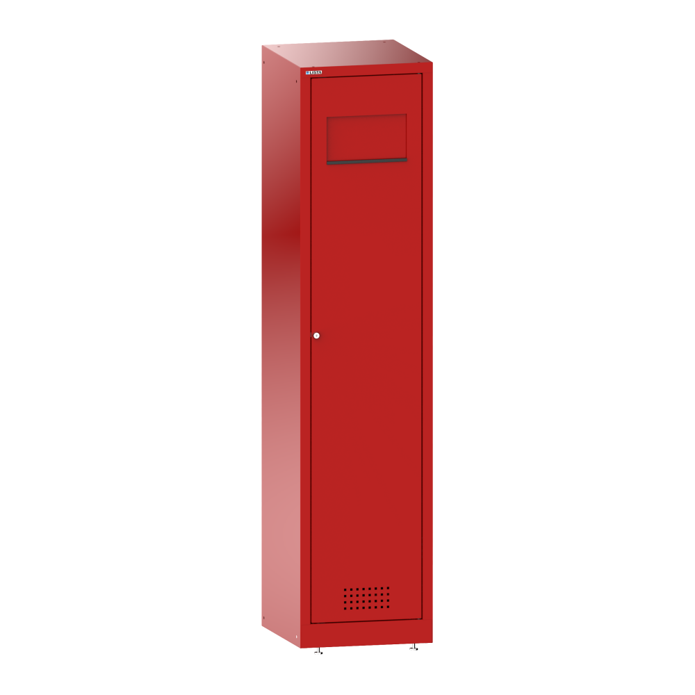 Armario de recogida de lavandería (AxPxA) 455x500x1950mm con 4 pies ajustables y trampilla de acceso KEY Lock Rojo vivo RAL 3000