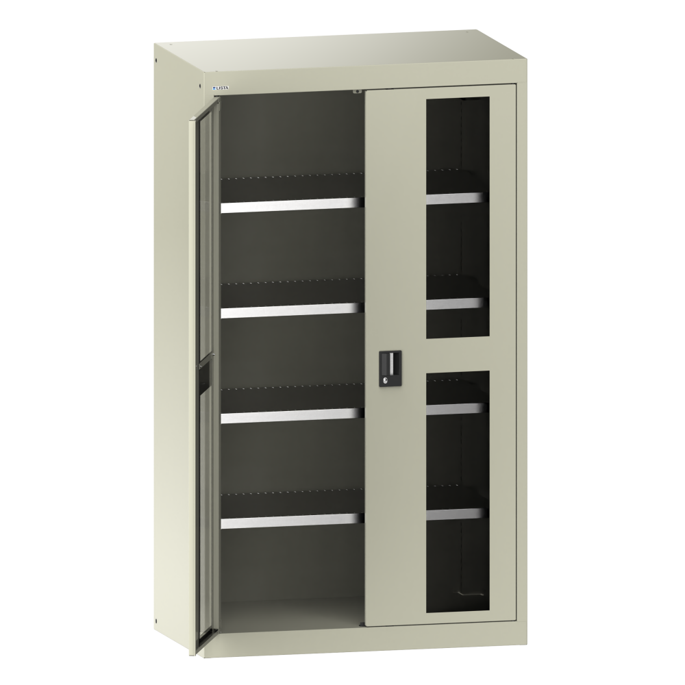 Puertas con ventana: el vidrio acrílico resistente a los rayos UV es irrompible y proporciona una mejor visibilidad en el puesto de trabajo.