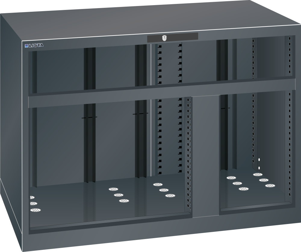 Bastidor Toolbox 64x27E (AxPxA) 1193x572x850mm 3 compartimento 64x27E/18x27E/36x27E KEY Lock (excl. cilindro) Negro NCS S 9000-N