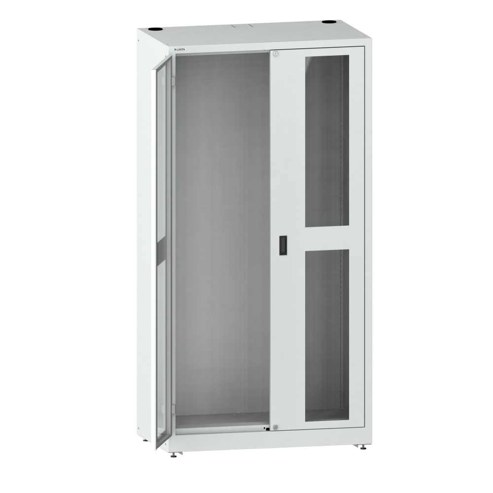Puertas con ventana: el vidrio acrílico resistente a los rayos UV es irrompible y proporciona una mejor visibilidad en el puesto de trabajo.