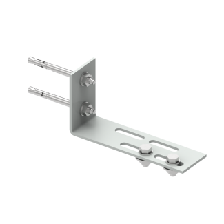 Fijación a la pared: Para atornillar los soportes de la estantería a la pared. Equipamiento: 2 pernos de acero M10x90, 1 ángulo de pared, rango de ajuste 0-55 (2 tornillos) 56-115 mm (1 tornillo), incl. material de fijación. Fabricado en chapa de acero. Color: gris claro RAL 7035.