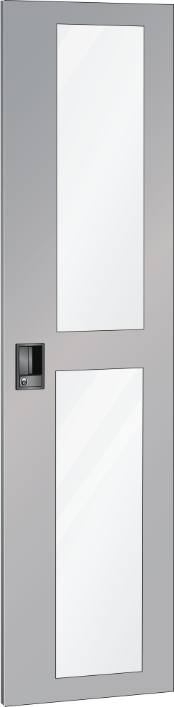 Puertas batientes: las puertas batientes de chapa maciza o con ventana son con remate de una pieza, insertadas y con cierre a ras del bastidor de armario. La suspensión de las puertas puede ser por bisagras y el ángulo de apertura es de unos 115 grados. Las puertas batientes pueden estar equipadas a elección con las cerraduras KEY Lock, CODE Lock o RFID Lock.