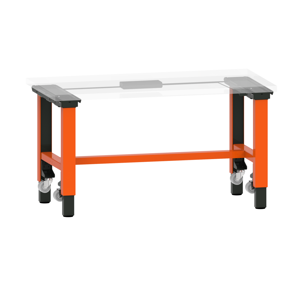 El juego de ruedas se fija directamente en el pie del puesto de trabajo Quattro y sirve exclusivamente para necesidades móviles temporales en estado sin carga. Al elevar el pie, las ruedas se «retraen» y garantizan así una posición más segura de la mesa Quattro.