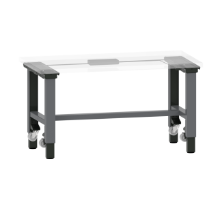 El juego de ruedas se fija directamente en el pie del puesto de trabajo Quattro y sirve exclusivamente para necesidades móviles temporales en estado sin carga. Al elevar el pie, las ruedas se «retraen» y garantizan así una posición más segura de la mesa Quattro.