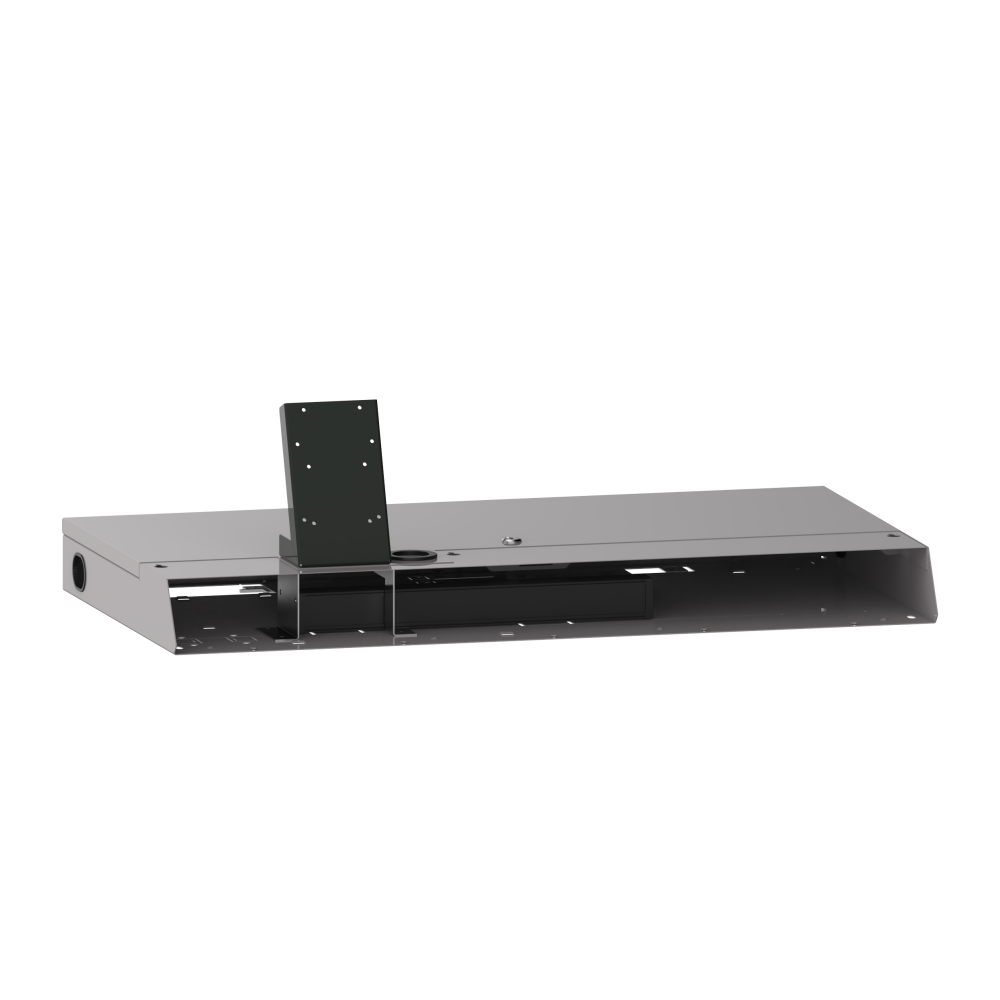 Soporte del monitor de la unidad base LDC: Sirve como canal de alimentación y protege el PC o el servidor. Acceso a apertura de emergencia mecánica y electrónica. Incl. seguro de transporte. El suplemento se cierra por el lado de la tapa con una cerradura cilíndrica (debe confirmarse por separado). Soporte para pantalla integrado directamente en el suplemento (Vesa Mount, distancia entre los orificios 75x75 y 100x100 mm, máx. capacidad de carga de 6 kg). Para alojar los paneles frontales (debe confirmarse por separado). Sin cable de alimentación (debe confirmarse por separado). Inc. regleta de enchufes. Modelo: chapa de acero. Color: según el catálogo de colores.