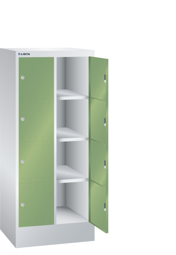 Armoire à casiers (LxPxH) 610x500x1395mm 2x4 casiers fermeture de sécurité à bouton rotatif Gris clair RAL 7035 / Vert réséda RAL 6011
