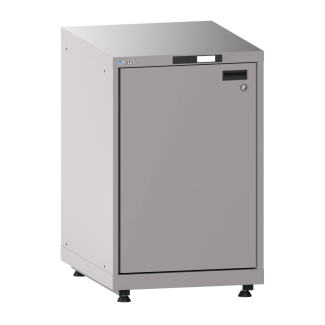 Armoire à portes battantes 27x36E (LxPxH) 564x725x895-940mm à gauche, 1 rayon extensible avec kit de pieds de mise à niveau pour caches (4 x pieds, 45-90mm) Aluminium gris RAL 9007