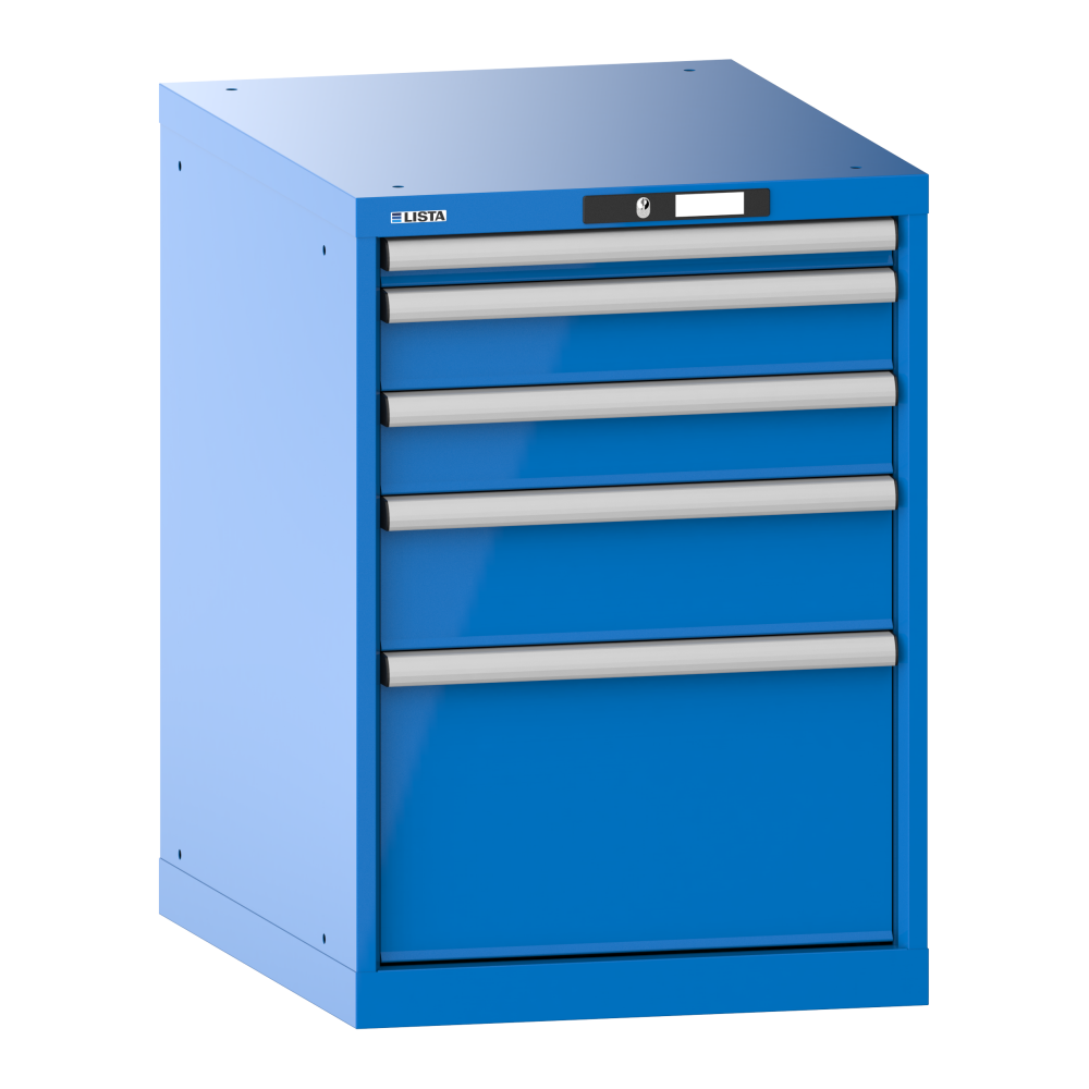 Armoire à tiroirs 27x36E (LxPxH) 564x725x800mm 5 tiroirs (1x50/2x100/1x150/1x300) 75kg KEY Lock Bleu ciel RAL 5015
