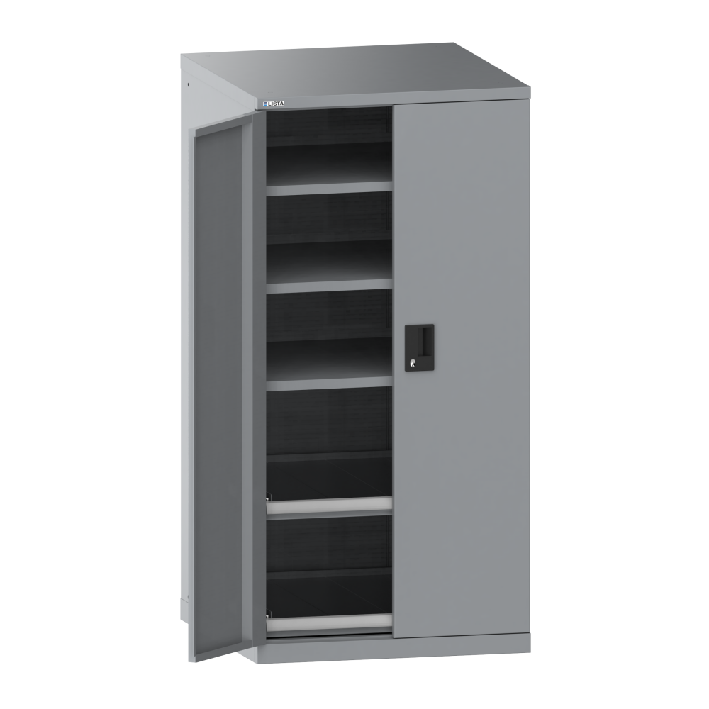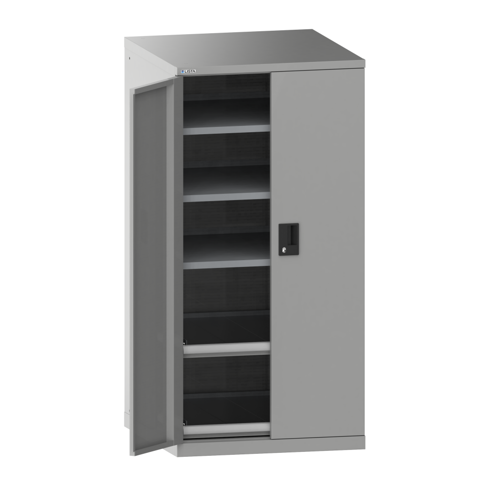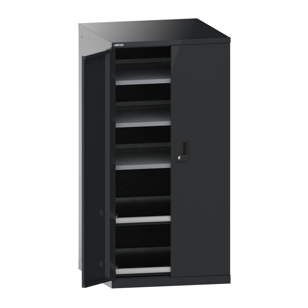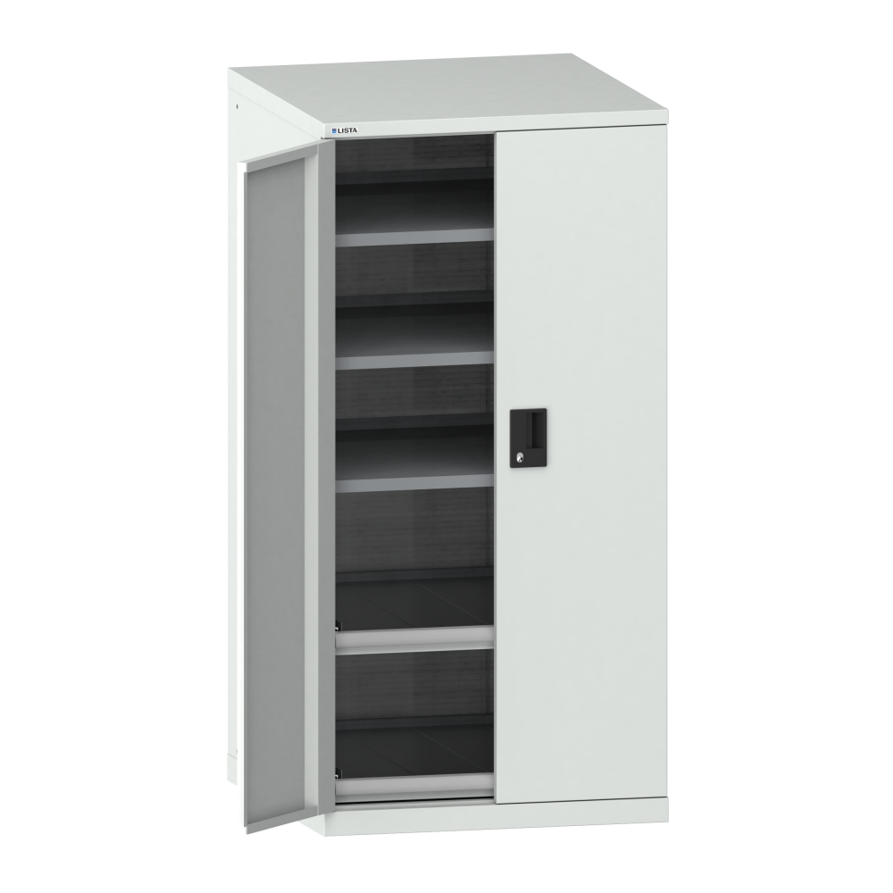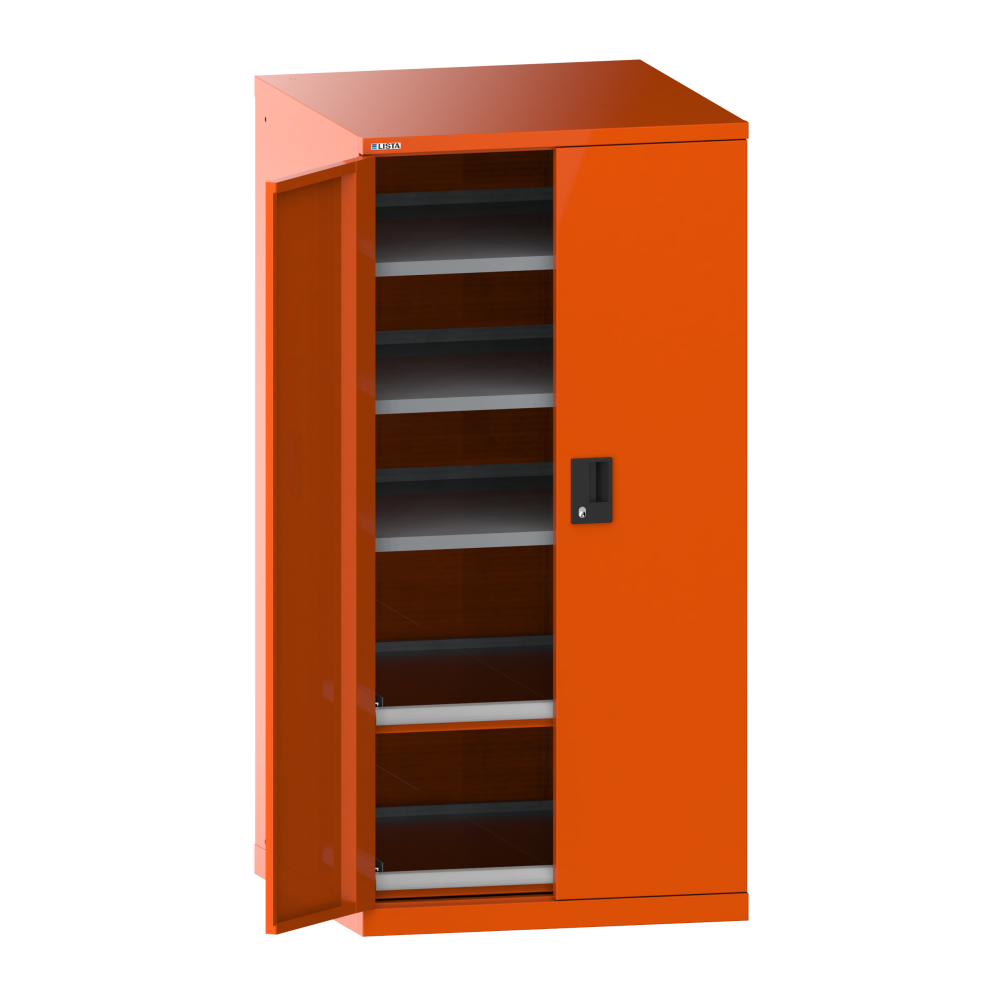 Portes battantes : Les portes battantes en tôle d'acier comprennent une fermeture à tringle 2 points et peuvent être au choix dotées des systèmes de fermeture KEY Lock, CODE Lock ou RFID. Lock. L'angle d'ouverture maximale est de 235 degrés.