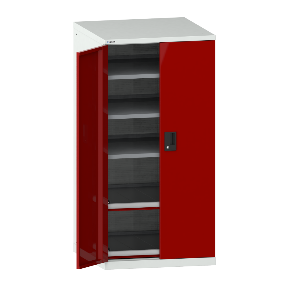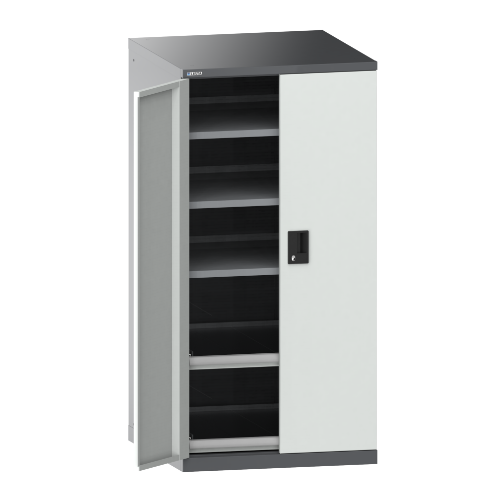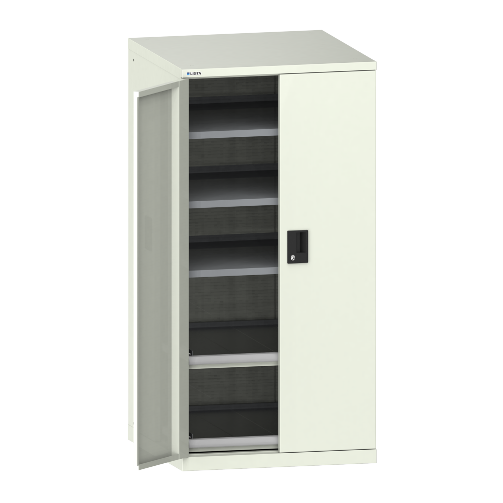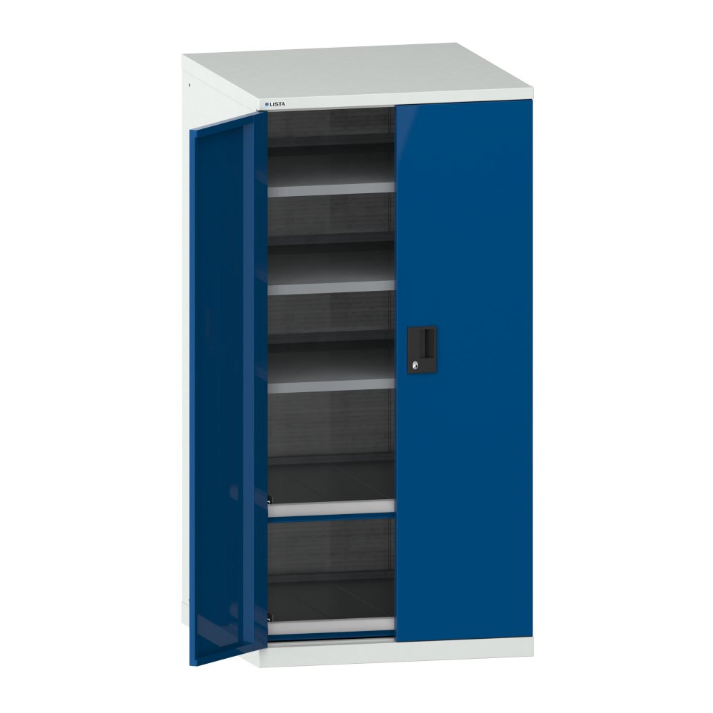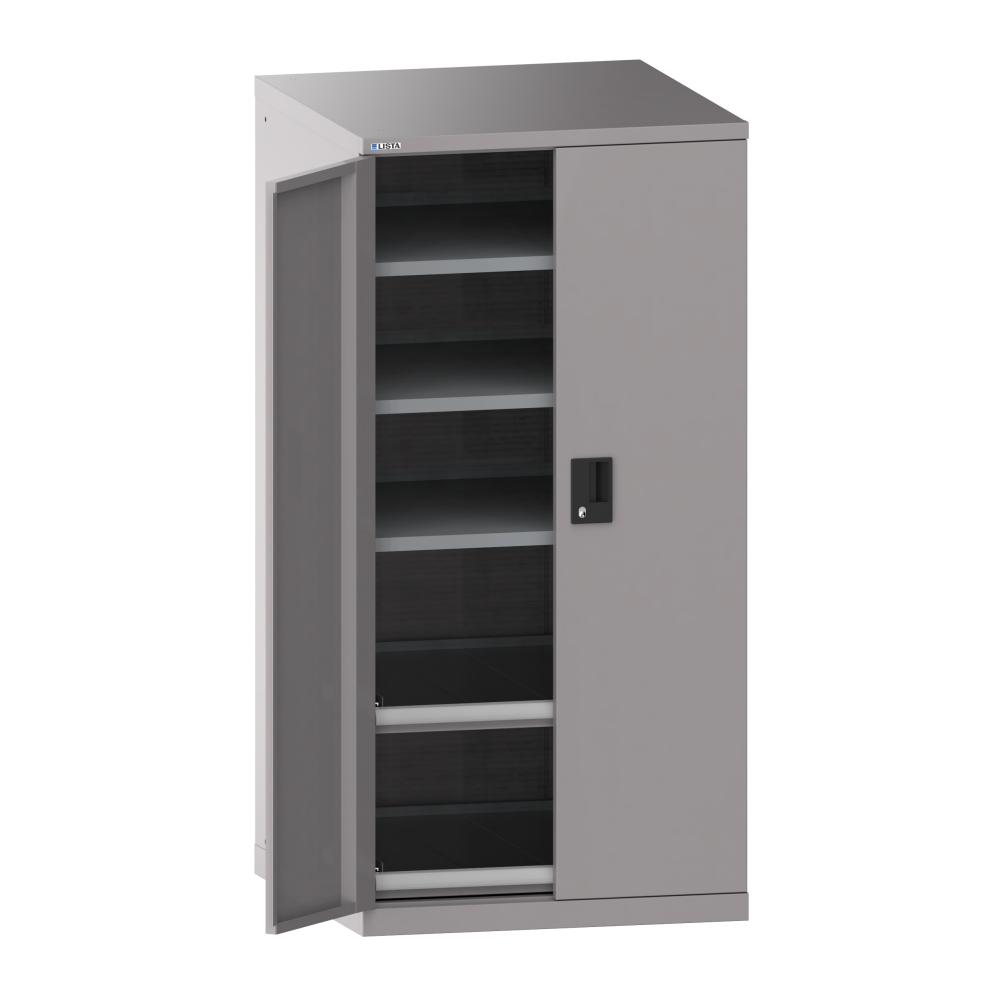 Portes battantes : Les portes battantes en tôle d'acier comprennent une fermeture à tringle 2 points et peuvent être au choix dotées des systèmes de fermeture KEY Lock, CODE Lock ou RFID. Lock. L'angle d'ouverture maximale est de 235 degrés.